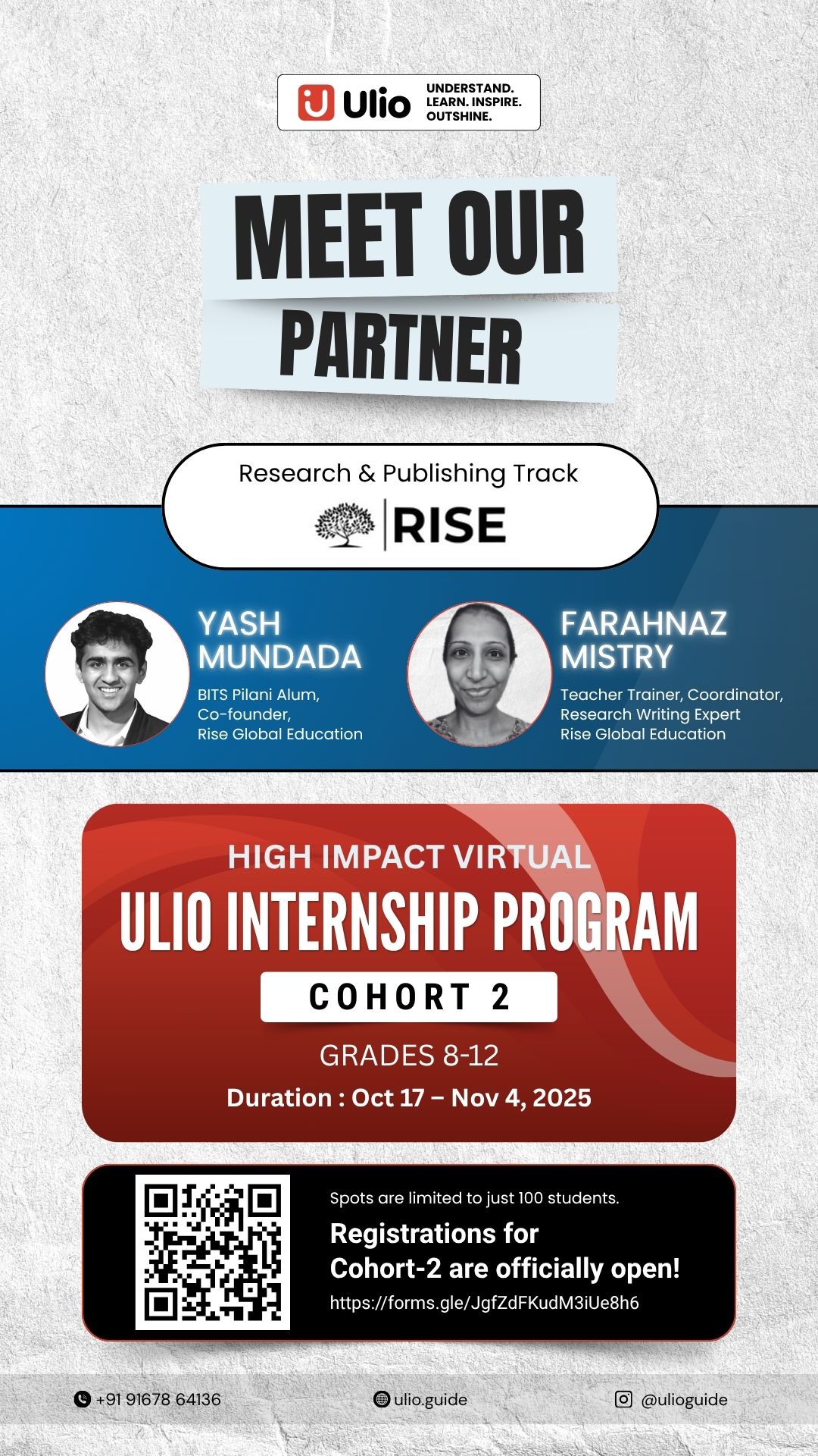 The ULIO Internship is a virtual Program curated for high school students to learn beyond the classroom. Over four (4) weeks, selected students (grades 8-12) will choose from one of four (4) tracks — Career Exploration, Research, Volunteering, or Leadership. Each track offers hands-on experiences designed to help students discover their interests, build real-world skills, and gain a head start over their peers.
